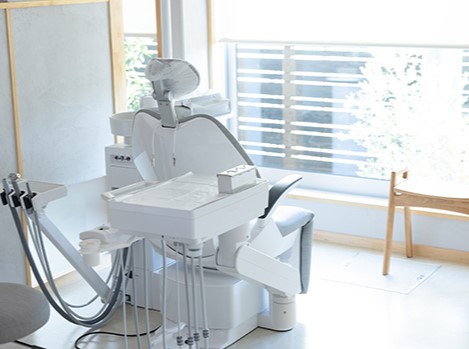 治療用の椅子に座る時が一番緊張しますよね。当院のチェアーはファブリック素材で座った時に外の植栽も見えます。”歯科医院の治療台”の雰囲気を極力少なくするよう努めました。