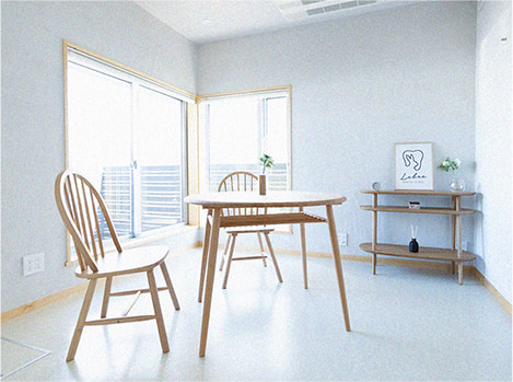 自然素材の内壁と木のぬくもりをふんだんに感じられる作りにしました。