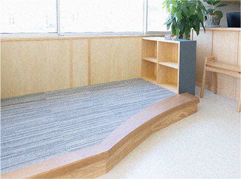 小さいお子様連れの方のためにキッズスペースやトイレ内にベビーチェアとおむつ交換台を完備しています。また、治療スペースを広くとることで車いすの方へも対応しています。