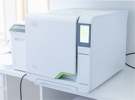 当院はヨーロッパ規格で最上位の滅菌機を保有しています。またコップ、エプロンなどはディスポーザブル器具を使用しており、いつでも清潔な治療環境をご提供しています。